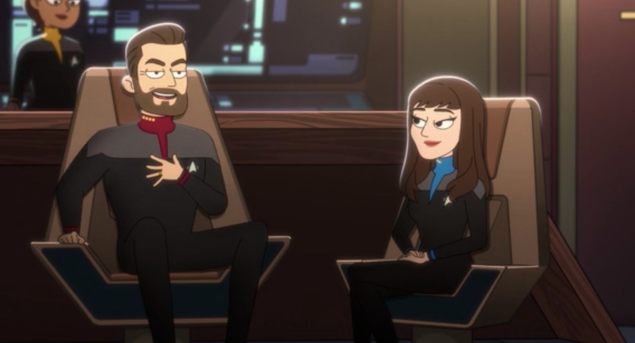 The Star Trek universe is not only expanding, but reinvesting in beloved characters from Trek series past in some wonderfully integrated ways. What started with Spock’s role on Discovery and the launch of the Picard series, has now extended into the universe’s animated world. In the Lower Decks season finale, the USS Titan warps in to save the day, led by none other than Captain William T. Riker (Jonathan Frakes) and Commander Deanna Troi (Marina Sirtis). Now, as confirmed by showrunner Mike McMahan during today’s “Star Trek Universe” panel at NYCC, we know Riker will be back in Star Trek: Lower Decks Season 2.