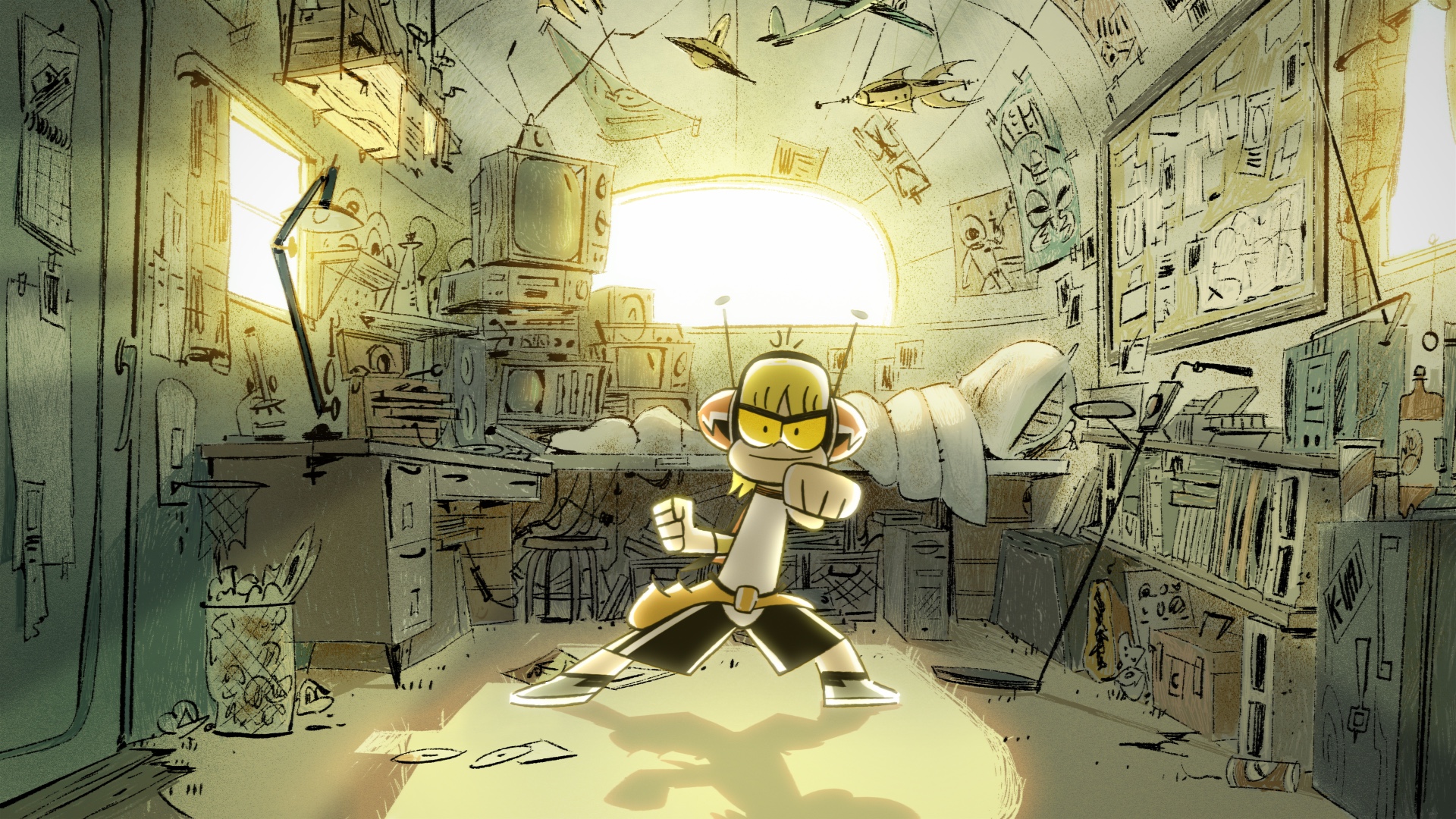 Frank Angones, who I did early Kid development with, and I are both huge Buckaroo Banzai fans and we were talking about a scene that got cut out where after the Lectroid ship was destroyed Buckaroo found some random Red Lectroids left behind who forgot to get on the ship. We thought the idea of having to deal with random aliens was hilarious. So we applied that to Stuck Chuck, and what started out as a joke turned into an absolutely essential character. Chuck is not only a constant threat to Kid’s life but he is a constant threat to his confidence. He’s like an anti-Jiminy Cricket and is one of my favorite characters in the show.