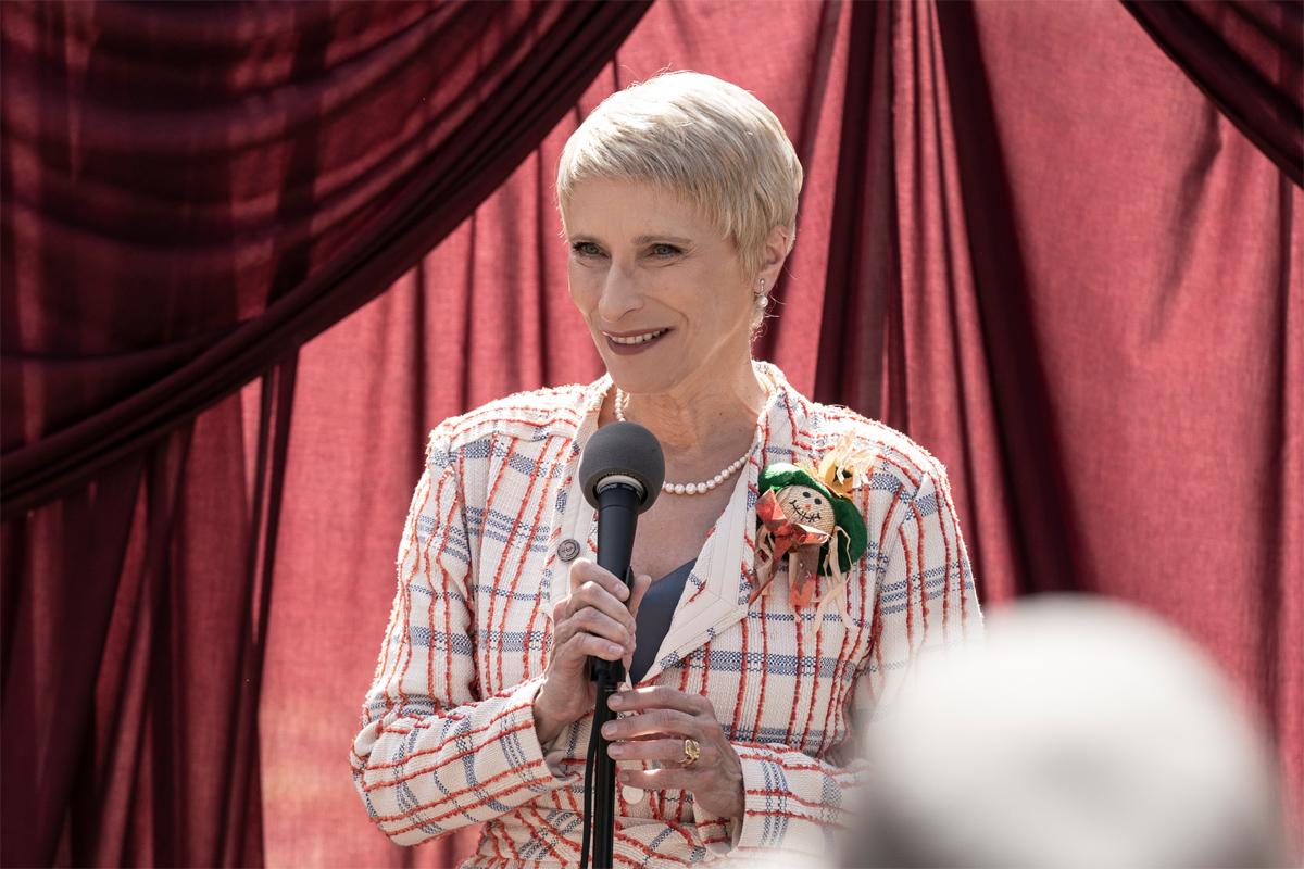 Laila Robins, known from recent runs on Dr. Death, The Blacklist and The Boys—and widely remembered as the wife of Steve Martin’s character in 1987’s Planes, Trains and Automobiles—was recently revealed to have been cast as desk-designated despot Pamela Milton for The Walking Dead Season 11. Her first official photo (seen in the article’s title image,) showcases clear parallels to the character’s notorious counterpart in the comic book source material. Indeed, in a surreal throwback to a world long lost to the undead, Robins’s Milton is making a speech in front of a microphone, rocking a sunny suit complemented by a bit of fall flair pinned to her lapel while brandishing the kind of disingenuous grin one would typically see plastered on posters around town during election season. Yet, Milton’s try-hard conviviality contrasts with the blurred foreground image of a Commonwealth soldier’s white helmet; a sobering reminder that her smiley suggestions aren’t optional.