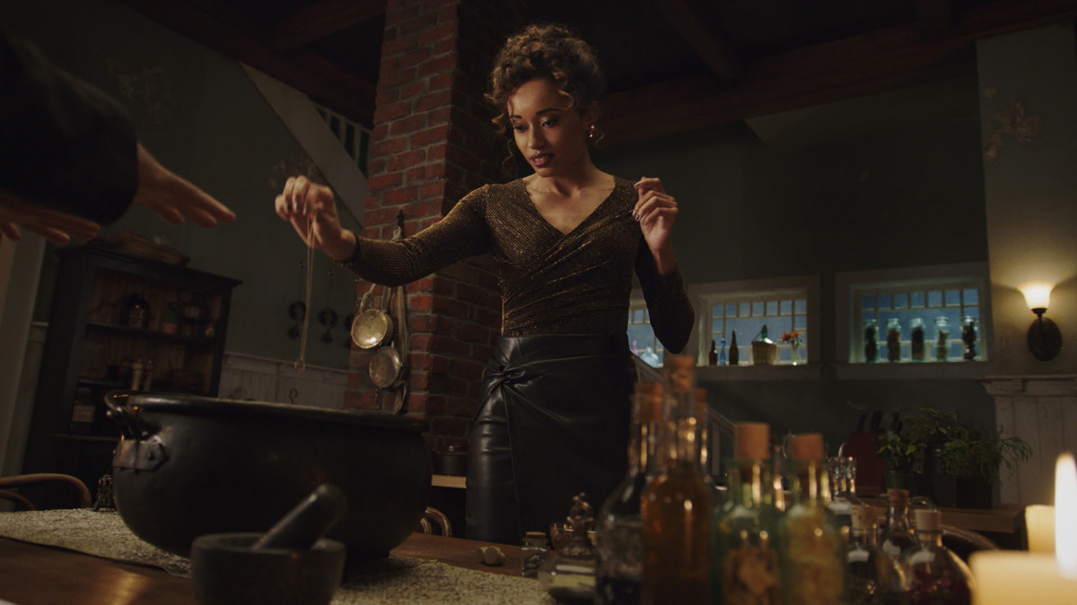 It is predictably terrific. Astra eventually uses a song spell from her mother’s diary to force Crowley back into the picture and turn off all the magic in their immediate vicinity, but before that, the whole episode is full of little notes and references that this show doesn’t normally do. That seems to indicate some geeking out by the team making it. Here’s a brief and certainly inexhaustive list: